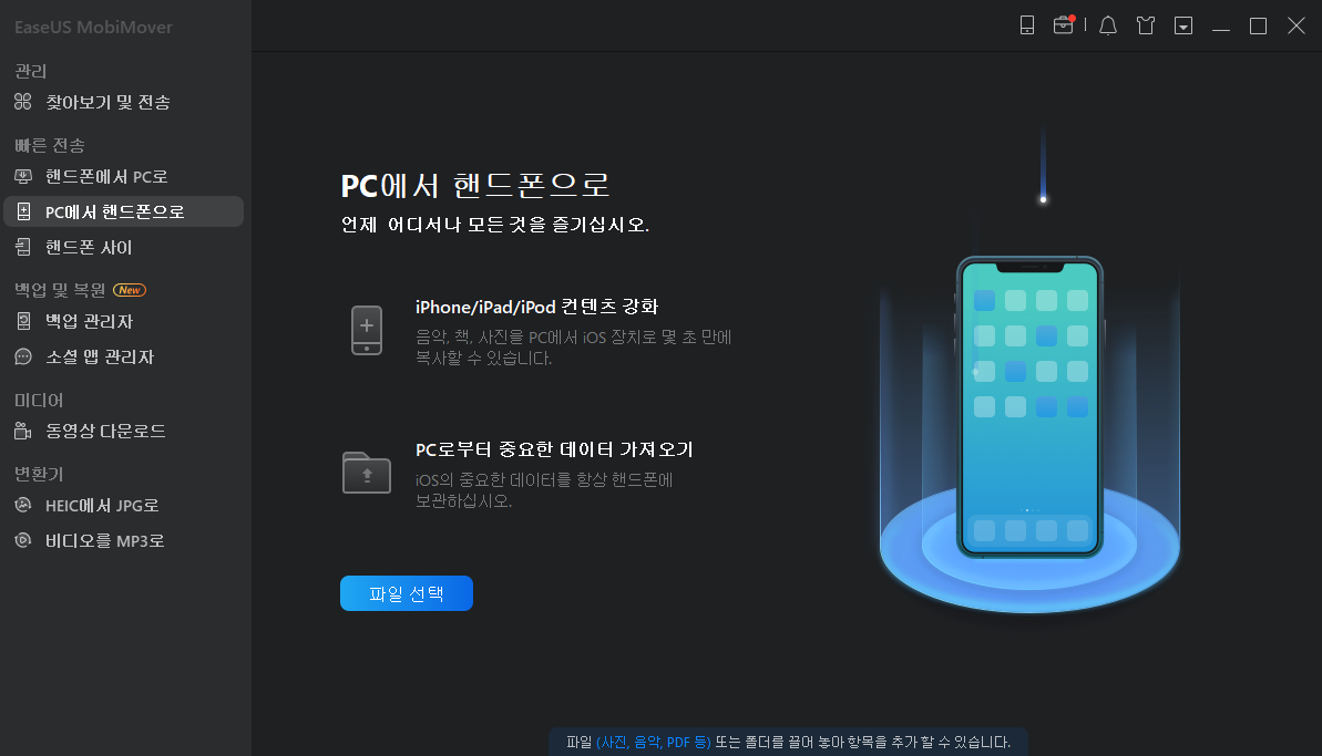 iPhone 데이터를 쉽게 전송 및 관리할 수 있는 iPhone 스마트 전송 도구
