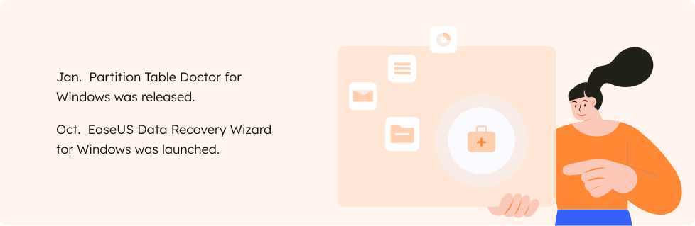 EaseUS iOS 솔루션 >>2014년, 마이크로소프트는 윈도우 XP 운영체제에 대한 기술 지원을 종료했습니다. 이에 맞춰 저희는 PC 사용자들이 기존 기기에서 새 기기로 데이터를 마이그레이션할 수 있도록 EaseUS Todo PCTrans를 출시했습니다. 같은 해, 파티션 소프트웨어와 윈도우 데이터 복구 도구의 주요 버전 업그레이드를 진행했으며, 데이터 복구 소프트웨어는 안드로이드 기기 지원을 시작했습니다.
