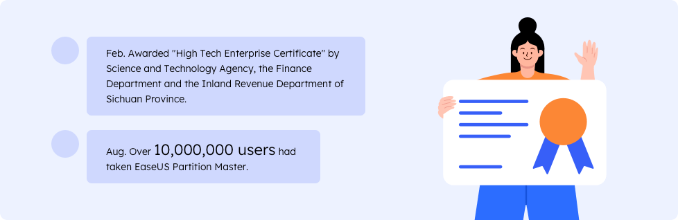 EaseUS 파티션 관리 솔루션 >>2007년, EaseUS는 전문 분야에서 인정을 받았고, 이는 소프트웨어 분야에서 계속 탐구해 나갈 수 있는 상당한 자신감을 심어주었습니다.