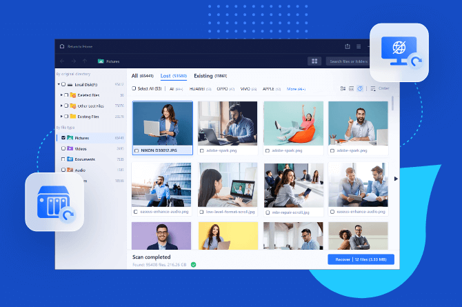 99.9%의 성공률로 하드 드라이브, SSD, 플래시 드라이브, RAID, NAS 등에서 손실된 데이터, 사진, 문서, 비디오를 무제한으로 완전히 복구하십시오.