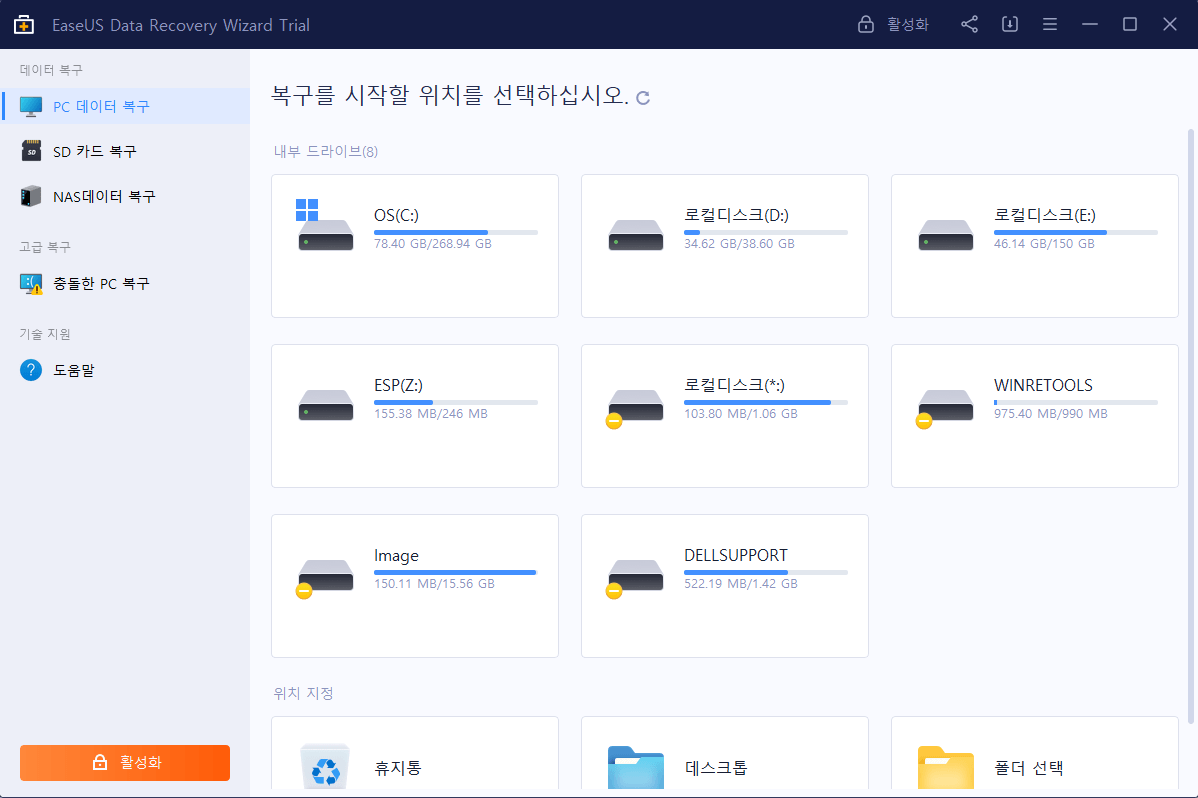 PC의 내부 디스크를 철저히 스캔하여 손실 데이터를 모두 감지하여 복구할 수 있습니다.