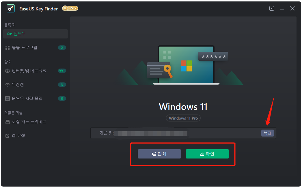 윈도우 11/10 컴퓨터에서 제품키를 분실한 경우, 간단한 프로그램을 통해 암호를 다시 찾을수 있습니다.바로 EaseUS Key Finder를 사용하는 것입니다.