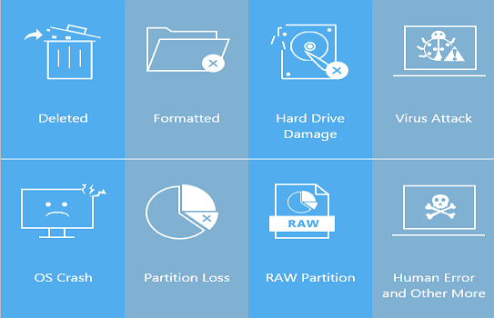 - 갑작스러운 삭제, 포맷, 하드 드라이브 손상, 바이러스 공격, 다양한 상황에서의 시스템 충돌에 대한 데이터 복구 지원