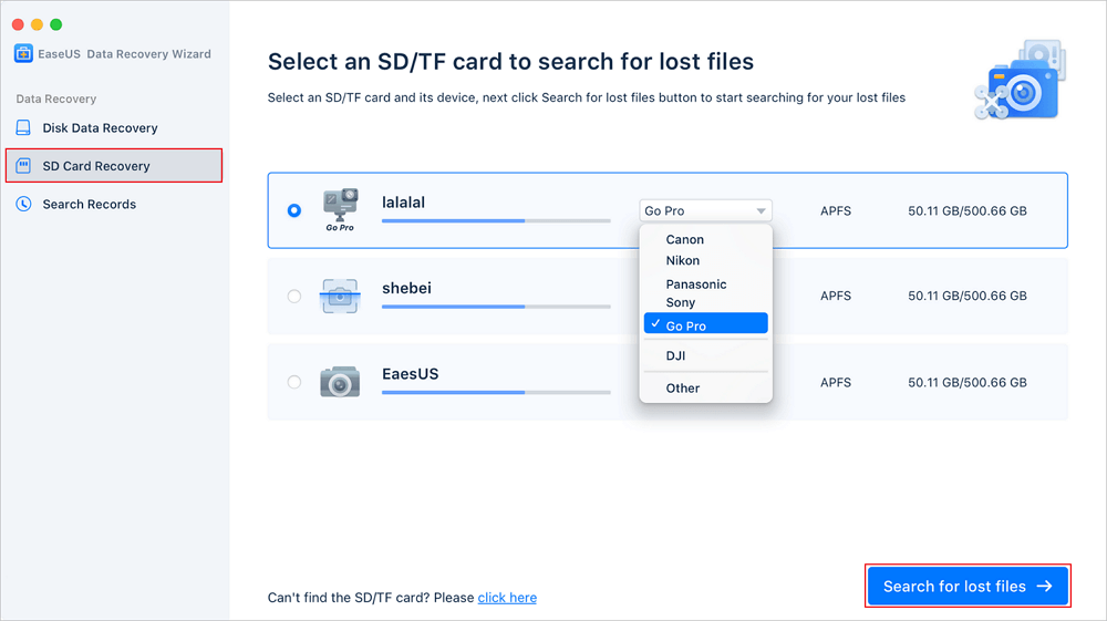 방법1. EaseUS 데이터 복구 마법사를 활용하여 카메라 메모리 카드에서 손상되거나 삭제된 사진 영상 복구