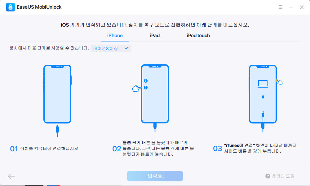 1단계: iOS 기기 연결 및 복구 모드 진입